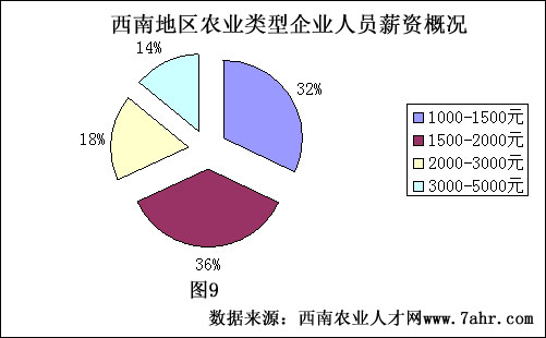 在薪資方面,除去市場(chǎng)銷售人員,多數(shù)企業(yè)的薪資都集中在1000-2000元這個(gè)區(qū)間,這也比較符合西南地區(qū)的消費(fèi)水平,與其它產(chǎn)業(yè)的薪資水平大體相當(dāng),可見(jiàn)農(nóng)業(yè)類型的企業(yè)薪資也不一定比其他產(chǎn)業(yè)差,隨著農(nóng)業(yè)企業(yè)的不斷發(fā)展,其薪資還會(huì)進(jìn)一步提升。本次調(diào)查我們?cè)O(shè)計(jì)了1000元以下與5000元以上兩個(gè)區(qū)間,但是這兩個(gè)區(qū)間都沒(méi)有被選擇。