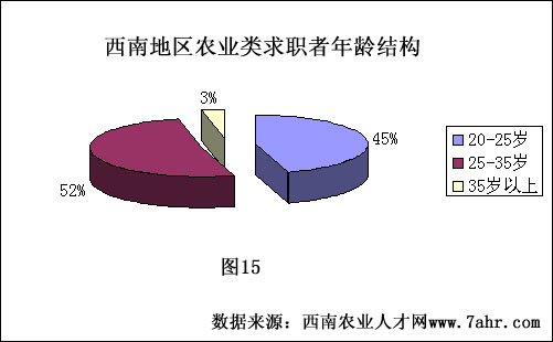 在本次調(diào)查中,以工作了兩年到十年的求職者居多,他們占到了本次調(diào)查數(shù)據(jù)的一半,即將畢業(yè)或才踏出校園不久的求職者占了45%,這部分由于缺乏工作經(jīng)驗(yàn),求職時(shí)遇到暫時(shí)性困難的比較多,但作為未來農(nóng)業(yè)的主導(dǎo)力量,我們有理由相信他們會(huì)一日做得比一日好。本次調(diào)查超過35%的求職者比重只有3%。在整個(gè)農(nóng)業(yè)領(lǐng)域中,這部分技術(shù)人才應(yīng)該大于這個(gè)比重,影響因素主要為本次調(diào)查為網(wǎng)上調(diào)查,因此決定了其年齡結(jié)構(gòu)基本為中青年為主,但現(xiàn)在使用網(wǎng)絡(luò)工具的老一輩技術(shù)人才觸網(wǎng)的也逐步多起來。另一個(gè)原因就是這部分求職者多為75年之前出生的,目前求職主要集中于報(bào)刊與熟人推介以及獵頭。