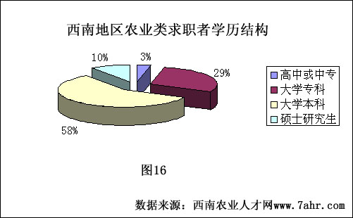 目前,農(nóng)業(yè)領(lǐng)域技術(shù)類人才的學(xué)歷較之以往有了很大的提高,從業(yè)人員構(gòu)成主要以大學(xué)本科為主,?茷檩o。這兩部分人員比例已經(jīng)達(dá)到了87%。其中,碩士研究生的比例也在進(jìn)一步提升,在2009年讀調(diào)查中,碩士生比例已經(jīng)達(dá)到了10%,同時(shí)高中或中專學(xué)歷所占比例在逐年遞減,但本次調(diào)查中,我們所設(shè)的博士學(xué)歷選項(xiàng)數(shù)據(jù)為零,可見西南地區(qū)還比較缺頂端的研究型人才,主要集中的為市場(chǎng)一級(jí)技術(shù)類人才。