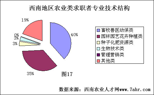在2009年度,西南地區(qū)的求職者都比較熱衷技術(shù)類,飼料/動(dòng)保/養(yǎng)殖技術(shù),園林園藝都插過了20%,只有種植農(nóng)業(yè)技術(shù)略低于20%,為18.33%。技術(shù)類人才達(dá)到了67.49%。此部分?jǐn)?shù)據(jù)分析對(duì)象為已工作經(jīng)驗(yàn)人士。