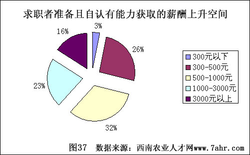 38%的求職者最看重的為自我價值的實現(xiàn),準(zhǔn)備尋找一個能實現(xiàn)自我抱負(fù)的企業(yè),只要企業(yè)將其放在合適的職位上,定將為企業(yè)奉獻(xiàn)自己的才與智。26%的求職者準(zhǔn)備選擇一個穩(wěn)定的職業(yè)然后在一條路上做縱向發(fā)展,將自己的專業(yè)技能做到更優(yōu)。工資福利待遇仍然是一個重要的選項,求職者付出了,自然應(yīng)該得到與之付出相匹配的待遇,否則,他們只好選擇跳槽,另謀高就。
