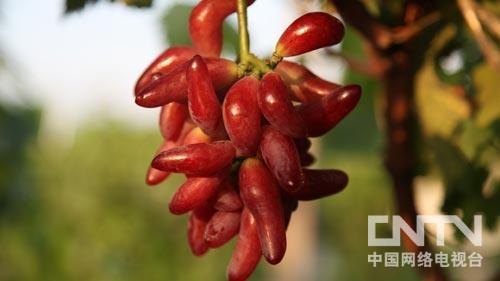 徐衛(wèi)東:恰恰看到我的外甥女,還擦了點(diǎn)紅指甲油,拽起這個(gè)葡萄的時(shí)候,發(fā)現(xiàn)這葡萄和她手指太相像了,簡(jiǎn)直就是個(gè)美女的手指,那個(gè)時(shí)候靈光一現(xiàn),這個(gè)品種就可以用“美人指”來(lái)命名。