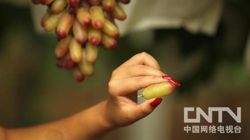 葡萄種植戶殷健:葡萄還從來(lái)沒(méi)看到這么長(zhǎng)長(zhǎng)的,跟手指一樣的,從來(lái)沒(méi)看到過(guò)。