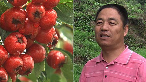 2008年,于安邦的五百畝山上種滿了山里紅。改良后的山里紅甜了好多,他把賣價比一般山楂提高了兩塊錢,但顧客都說他賣的就是普通山楂。
