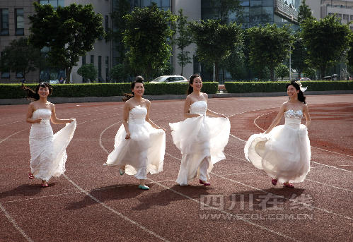于是,幾個(gè)姑娘就在溫江的一個(gè)攝影工作室訂了婚紗照拍攝。曾添說,為紀(jì)念這段美好的大學(xué)時(shí)光,她們將拍攝地點(diǎn)選在了學(xué)校。
